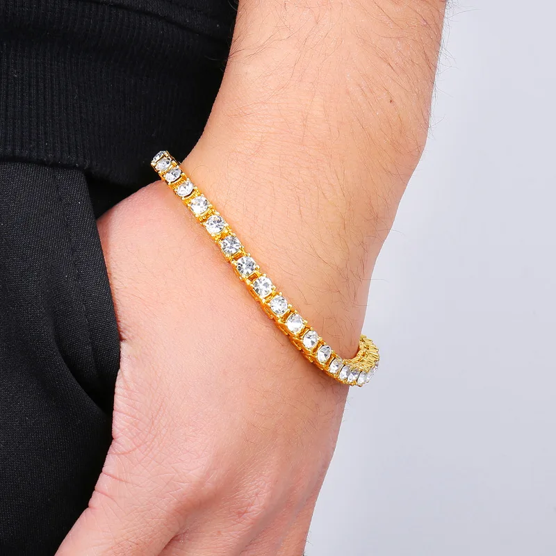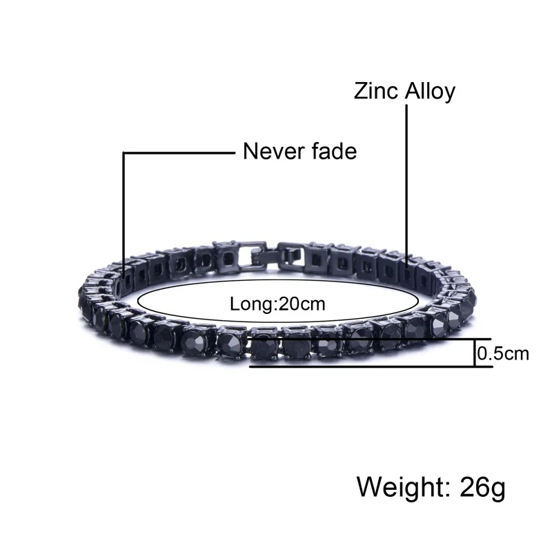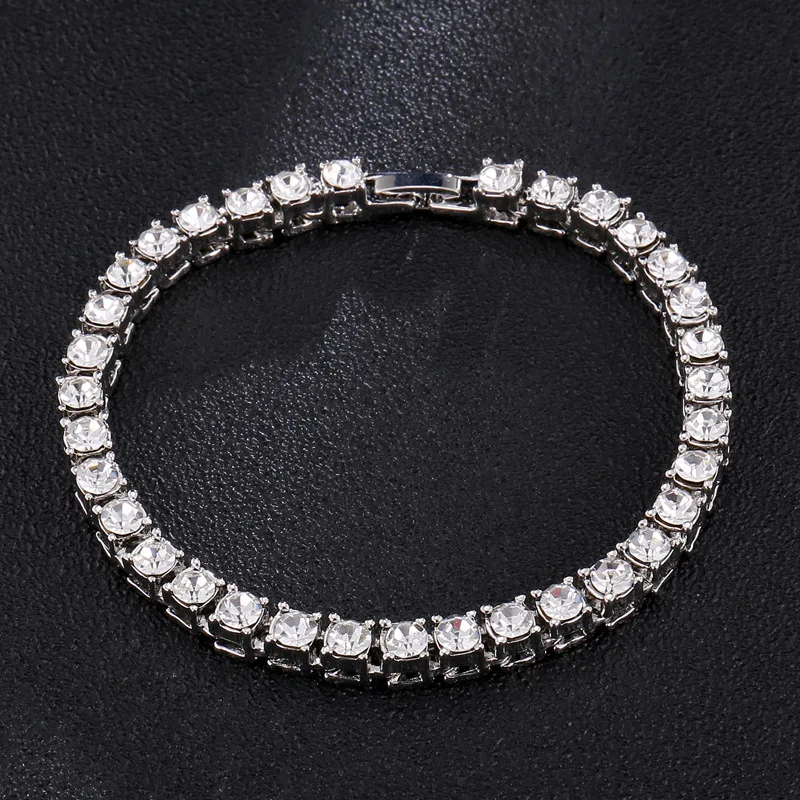 Hip Hop Tennis Bracelets 1 Row Bling Rhinestone Cubic Zirconia Bracelet Tennis Chain Bracelets For Women Men Jewelry